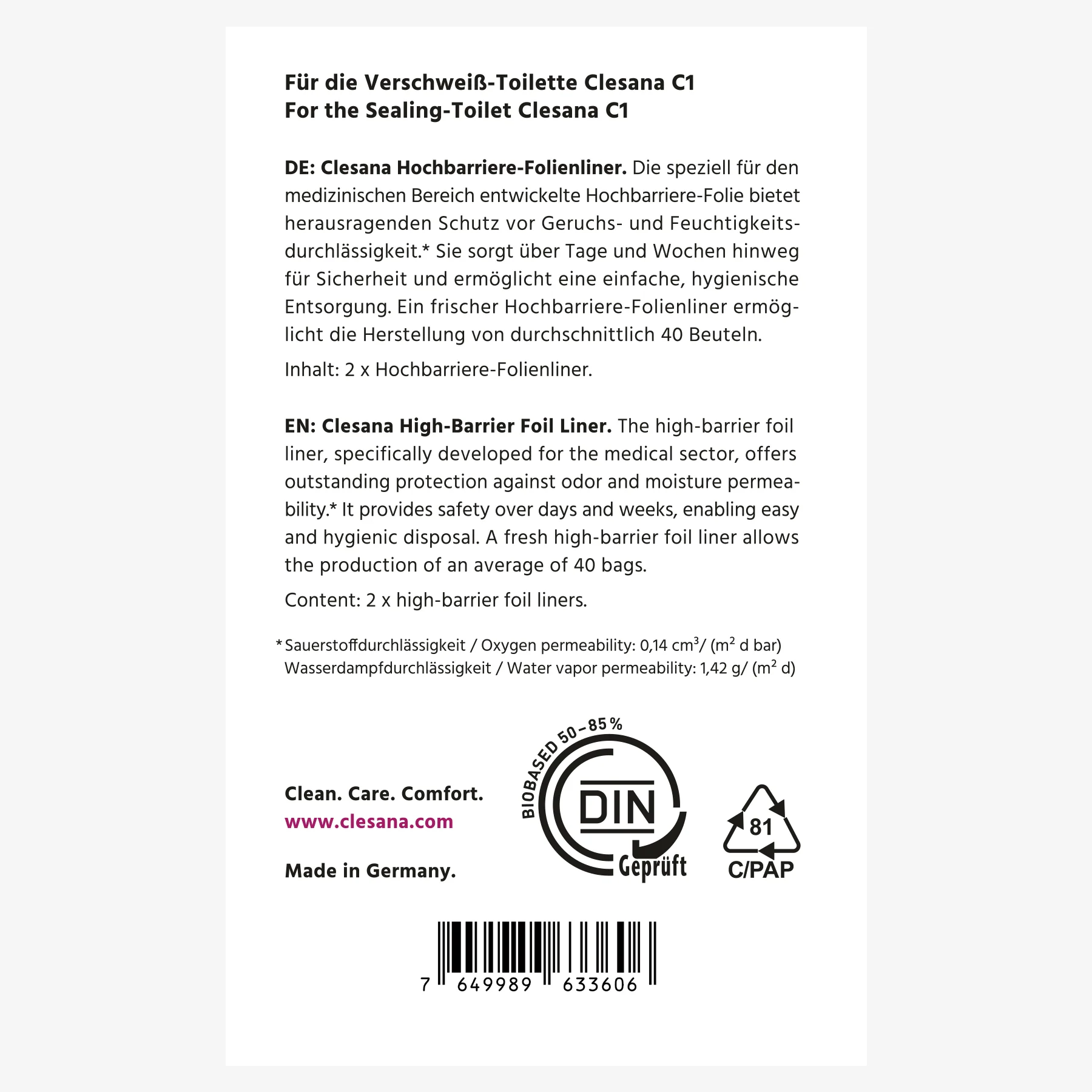 Inhalt: 2 Stück Bio-Barriere-Folienliner je Packung.